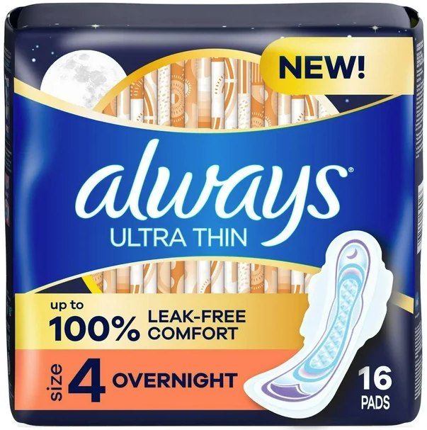 🩸 Always Ultra Thin Pads (Size 4 Overnight, 16ct)